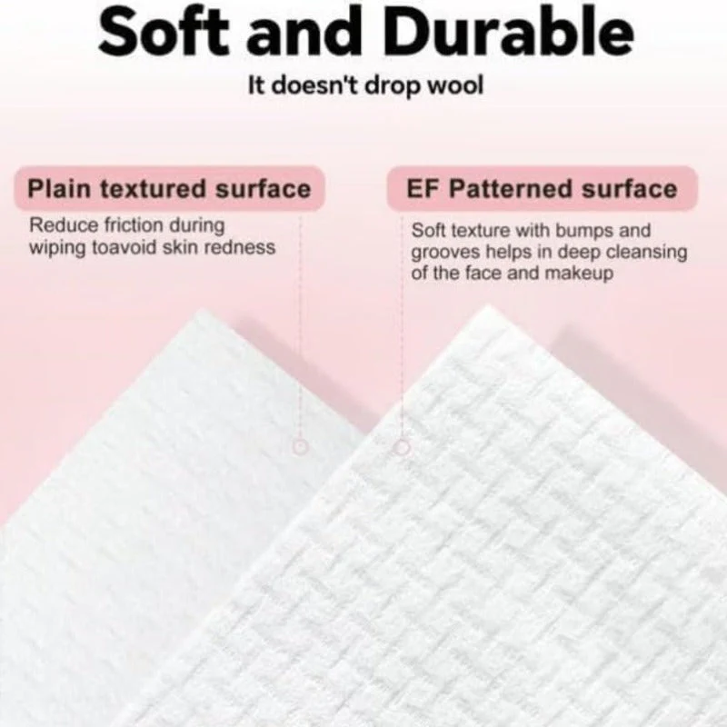 Made from dense cotton fiber for a soft feel on all skin types, including sensitive skin. The dual-texture design includes a smooth side for gentle wipes and an EF embossed side for deeper cleansing—perfect for baby care or makeup removal.